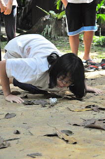 Aha, before I went for the obstacle walk, A Mui asked me to be careful with her 真诚 de brown eyes!! This scene 深深的烙印在我心里了...